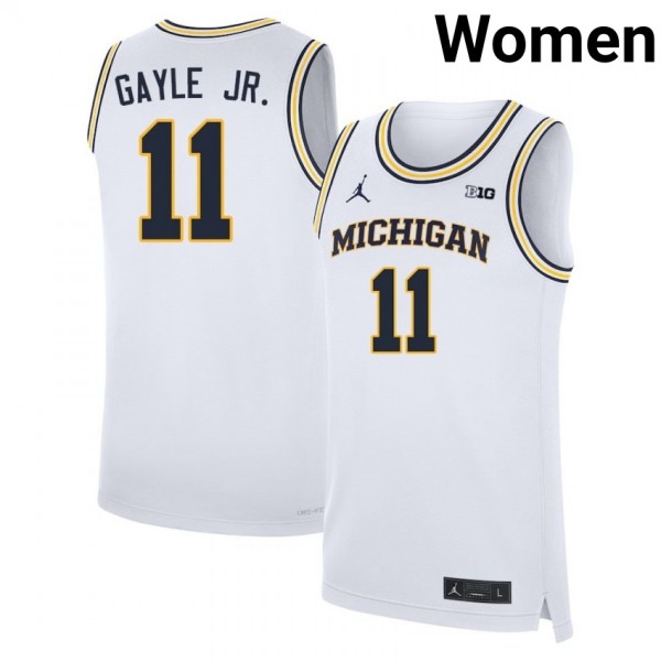 • Roddy Gayle Jr. Michigan #11 Womens University College Basketball Jerseys - White