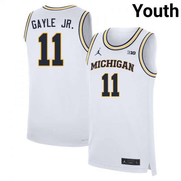 • Roddy Gayle Jr. Michigan Player #11 College Basketball Youth Jerseys - White